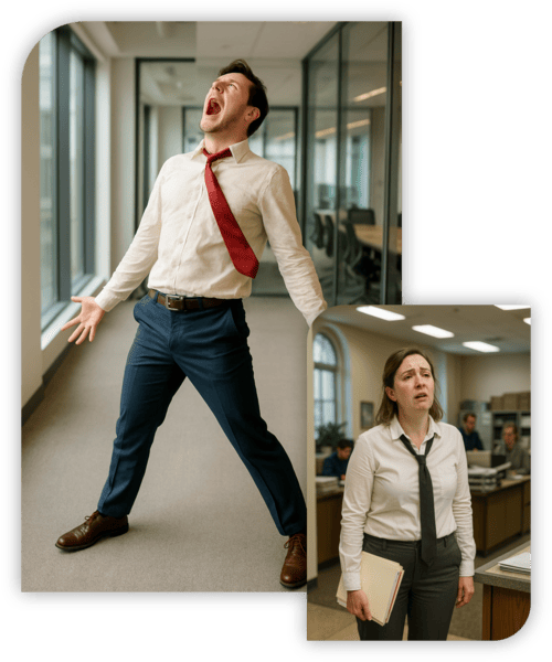 Le Martyr se reconnaît à une cascade d’attitudes plaintives : volontariat excessif, puis récit détaillé des heures tardives et des week-ends sacrifiés, ponctué de soupirs théâtraux. Quand on le félicite, il répond : « Ce n’est rien », mais glisse aussitôt qu’« on aurait pu au moins me prévenir plus tôt », mêlant modestie apparente et grief voilé. Face au conflit, il courbe l’échine, se retire… avant de murmurer qu’il est « toujours celui qu’on oublie ». Sous stress, il dresse l’inventaire de ses renoncements, brandit ses maux physiques comme preuves irréfutables d’usure – maux de dos, fatigue chronique –, et lance : « Si je tombe malade, tant pis, personne ne m’aide ». Ces plaintes, parfois entachées d’un ressentiment latent, créent une tension diffuse : les collègues oscillent entre pitié et exaspération, redoutant de nourrir malgré eux un cycle de dramatisation sans fin.